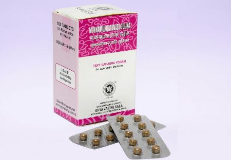 Utilisation: les comprimés peuvent être avalés selon la dose prescrite. Les pilules à usage interne peuvent être mélangées avec de l'eau tiède ou tout autre drava dravya prescrit ou selon les directives du médecin.