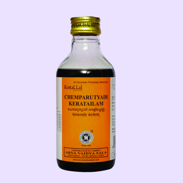 Ingrédients: Keratailam - huile de coco Jus de Japa - Hibiscus rosa sinensis Vilwa patra - Feuilles de marmelos Aegle Paranti - Ixora coccinia Nagavallika - Feuille de bétel - Piper betle Tulasi - Basilic sacré - Ocimum sanctum Neeli - Indigofera tinctoria Vasini - Biophytum candolleanum Tamalaki - Phyllanthus niruri Pâte de Jiraka - Cuminum cyminum Krishnajiraka - Nigella sativa