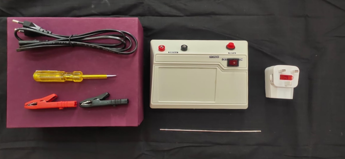 Il est fourni avec 2 électrodes, 2 cordons, 2 pinces, un cordon secteur, le boitier électronique, un boitier de rangement.